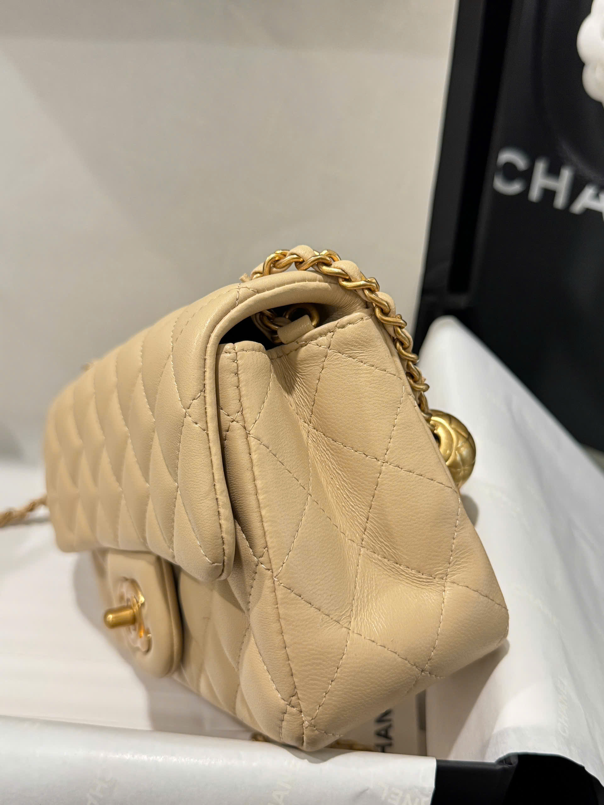 Chanel Classic Bell Bag 11 Handbags Beige Leather Lock Gold 20cm