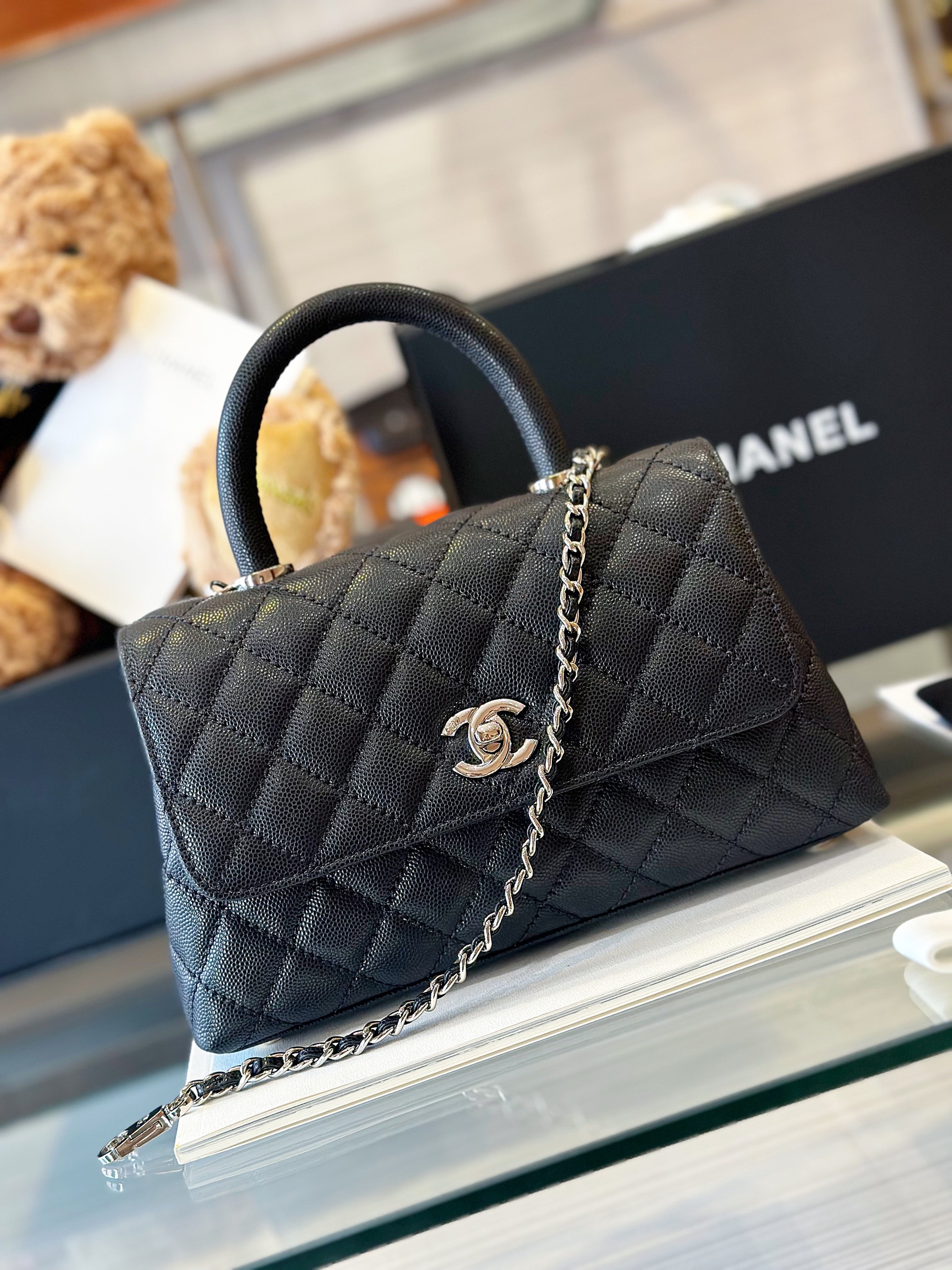 Chanel Coco Handbag Leather Black With Silver Lock 23cm