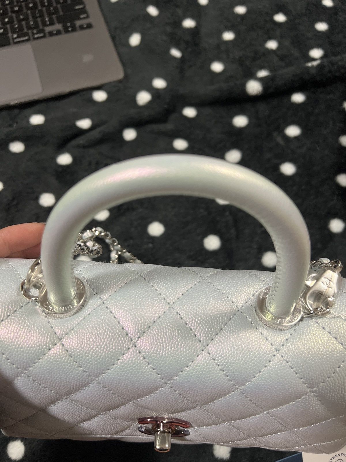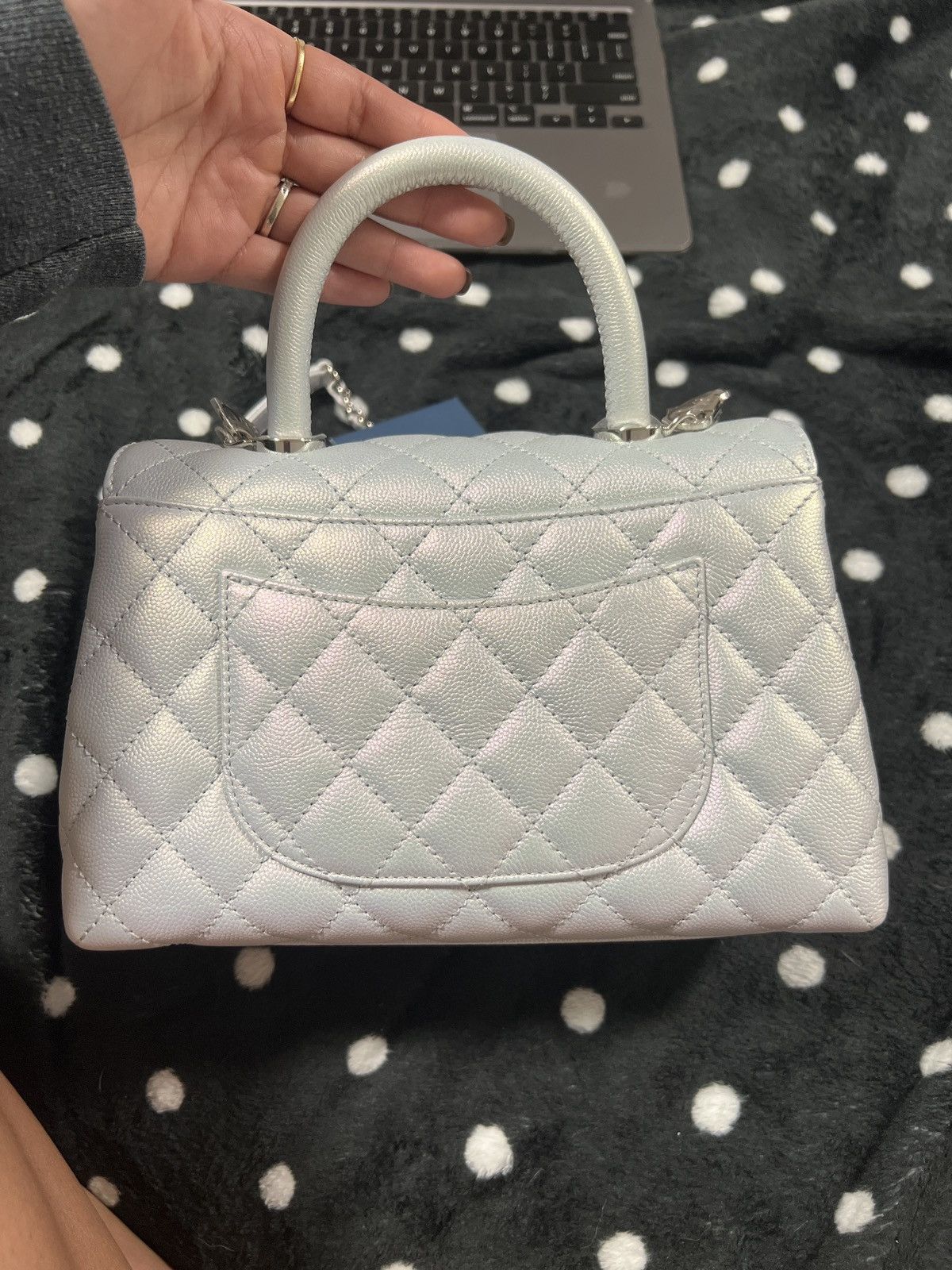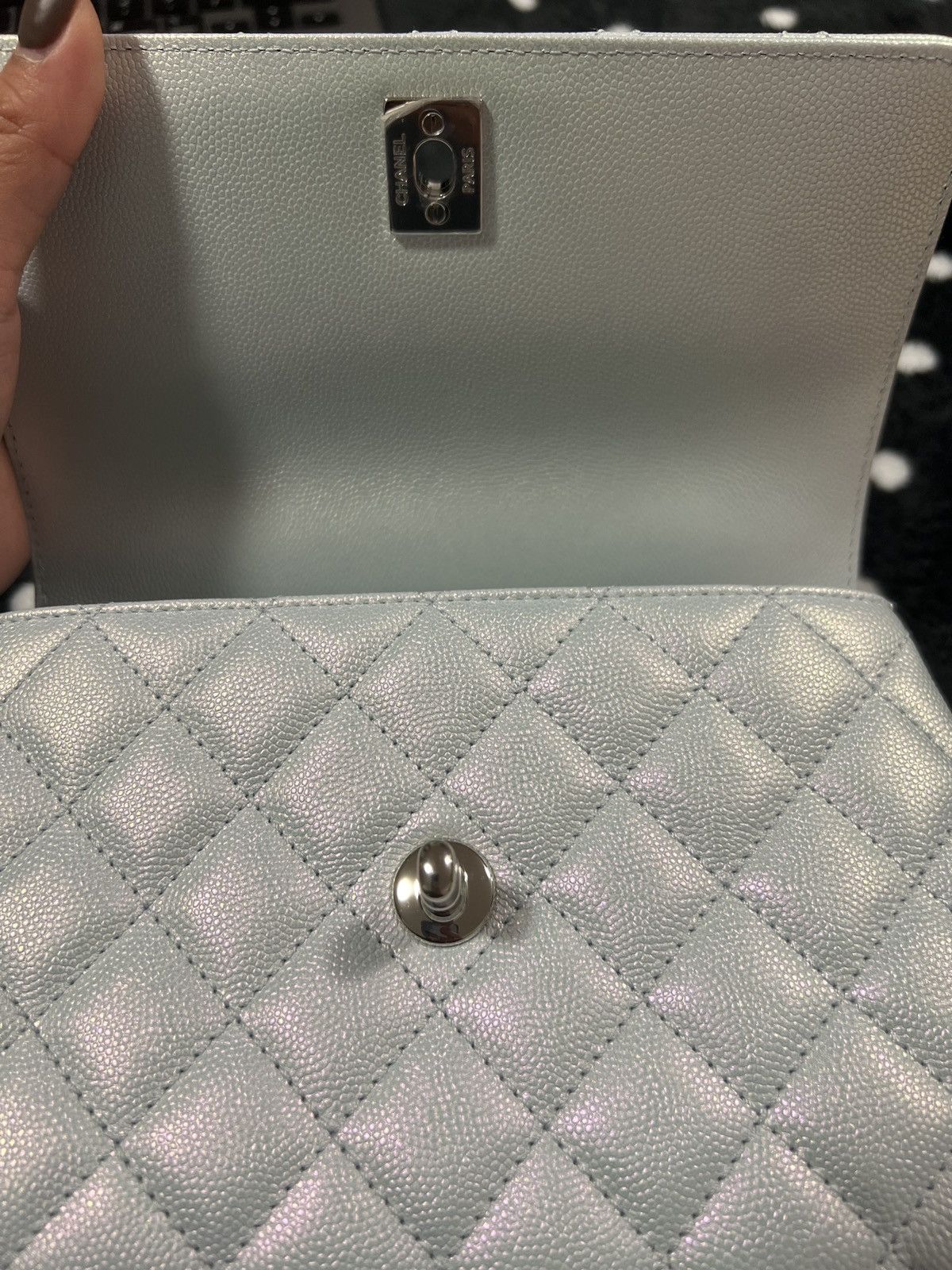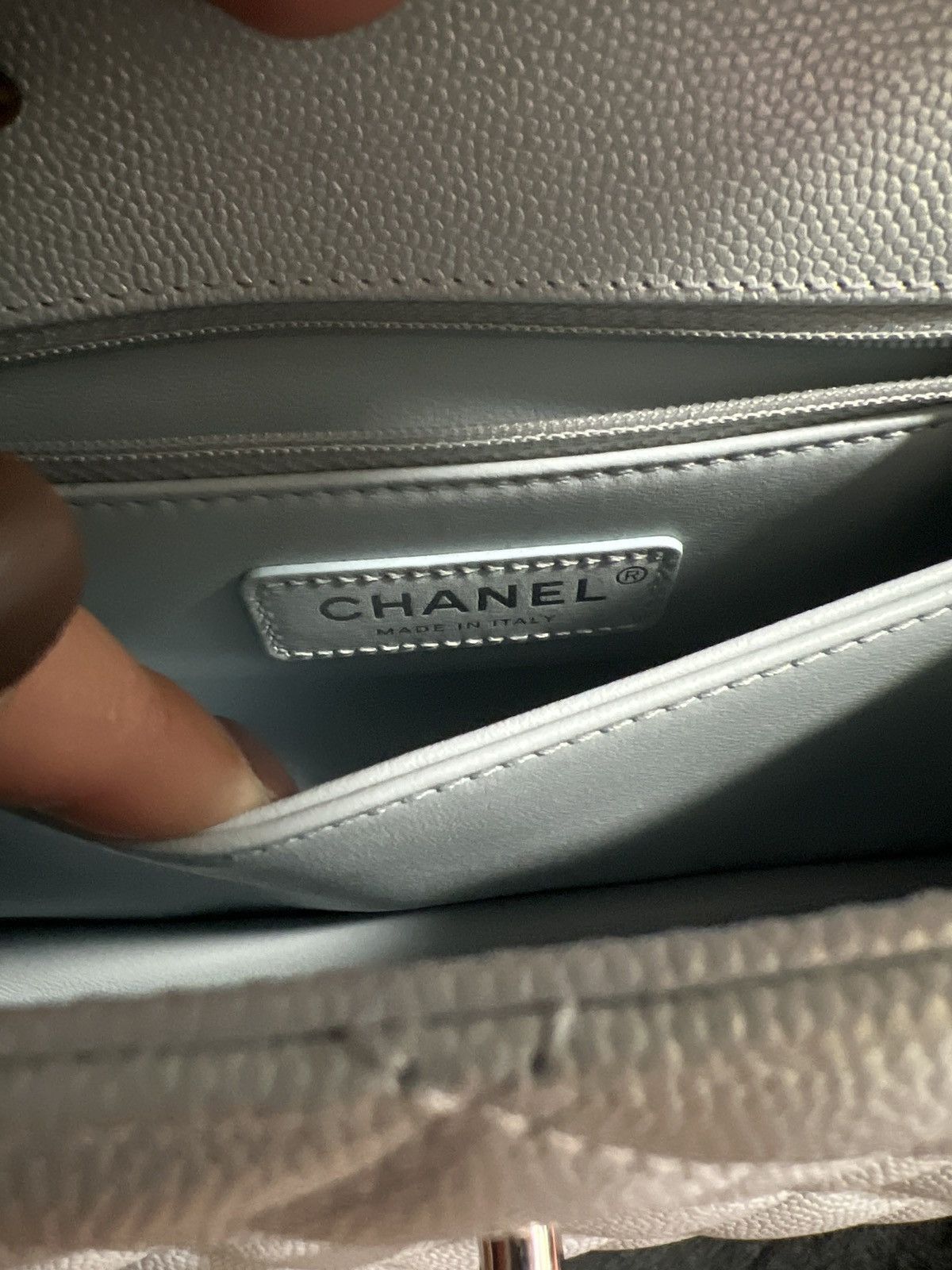 Chanel Coco Handbag Leather Light Grey Woman’s 23cm