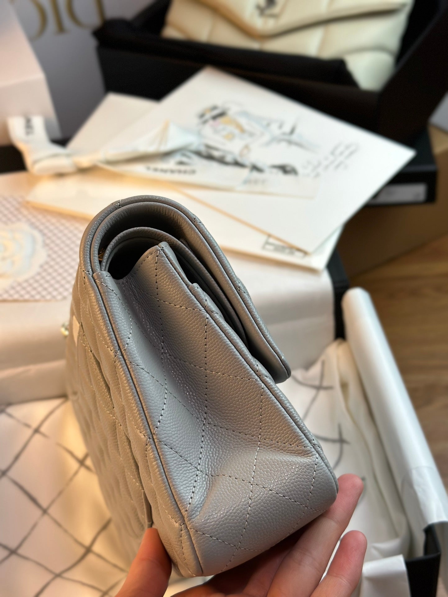 CHANEL FLAP BAG 25CM GOLD HARDWARE GREY CAVIAR