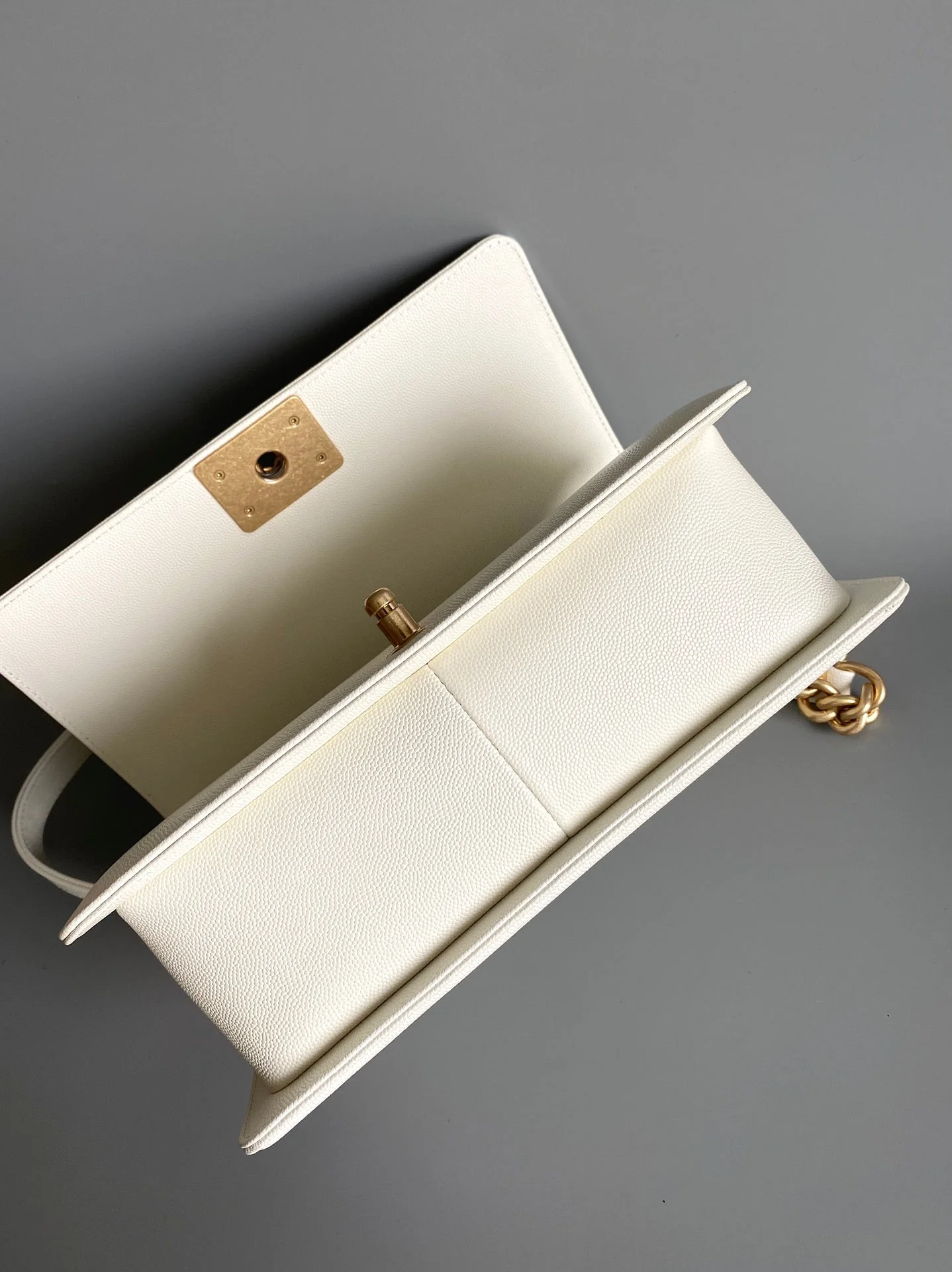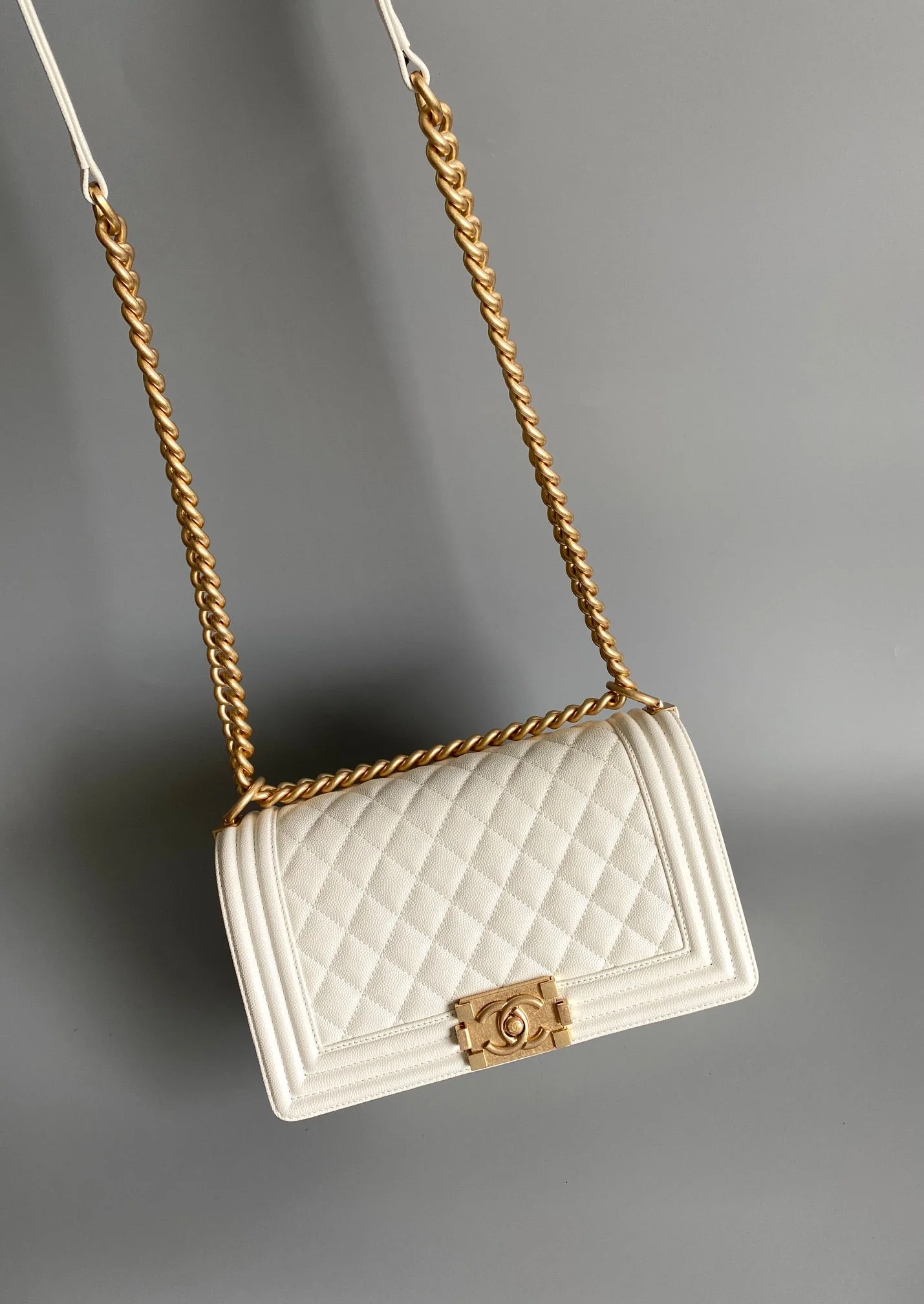 CHANEL MEDIUM 25 BOY BAG IN WHITE LAMBSKIN GOLD HARDWARE