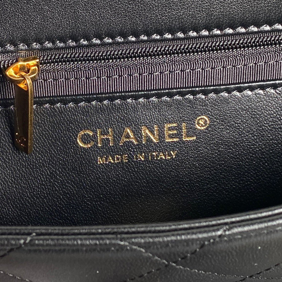 CHANEL MEDIUM FLAP BAG 26 IN BLACK CALFSKIN GOLD DOUBLE C THICK CHAIN