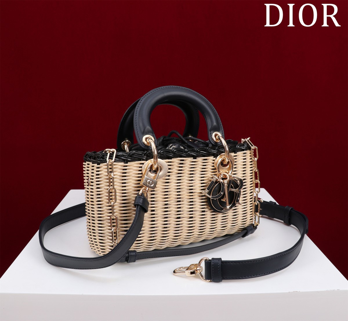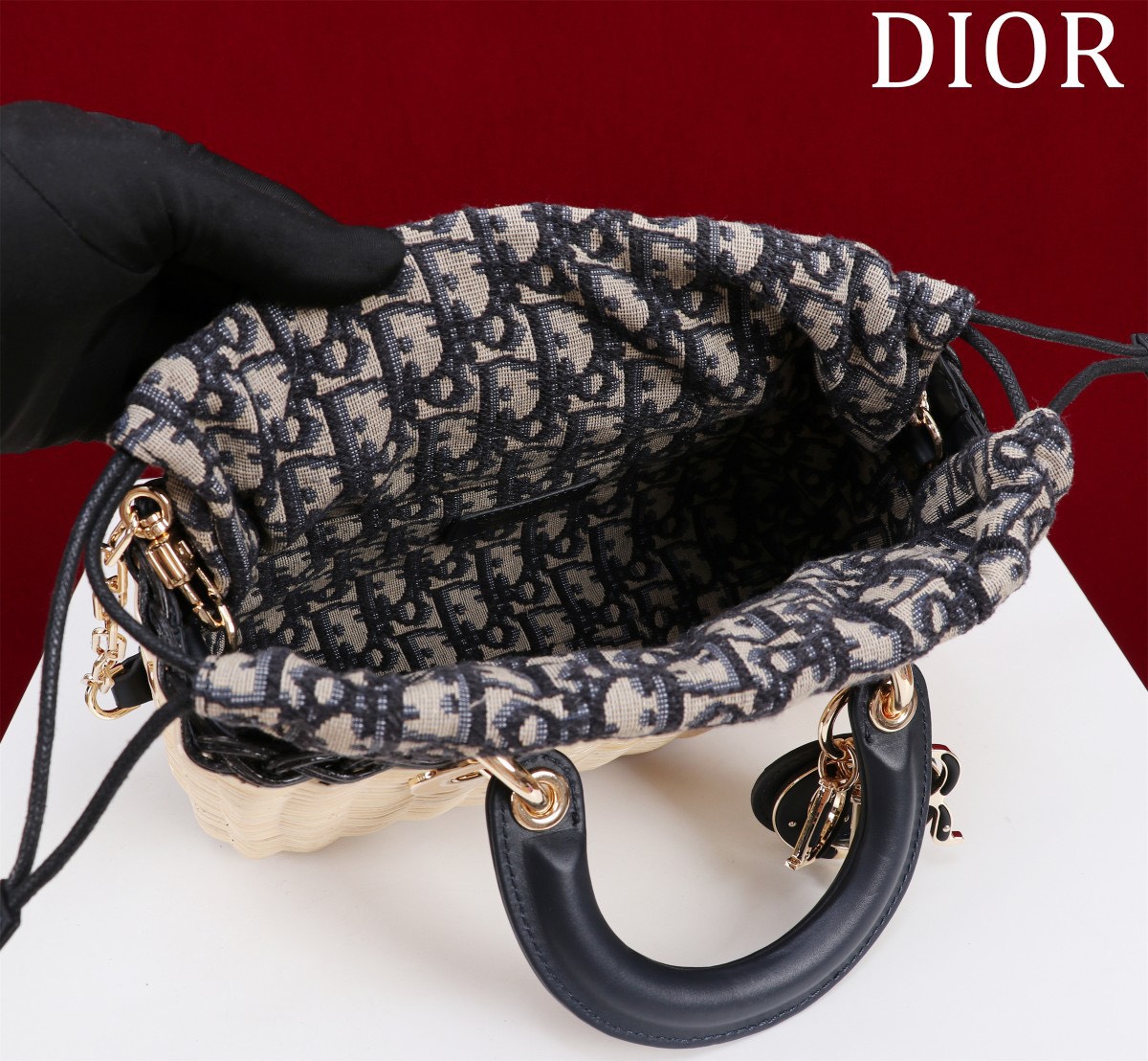 Dior D-Joy Lady Wicker Handbag Like Auth 22cm