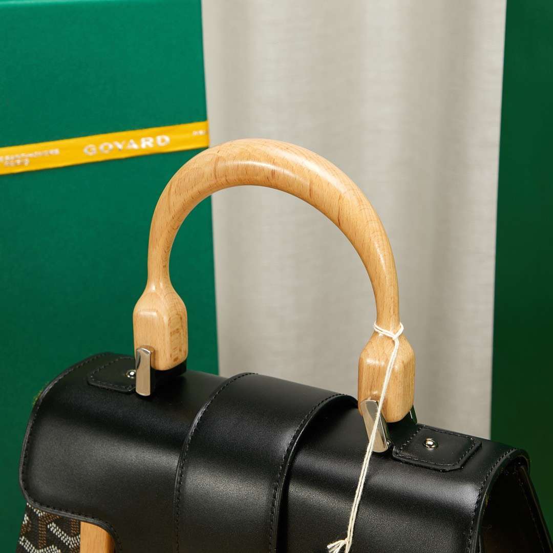Goyard SAIGON Black Handbag With Wooden Handle 28cm