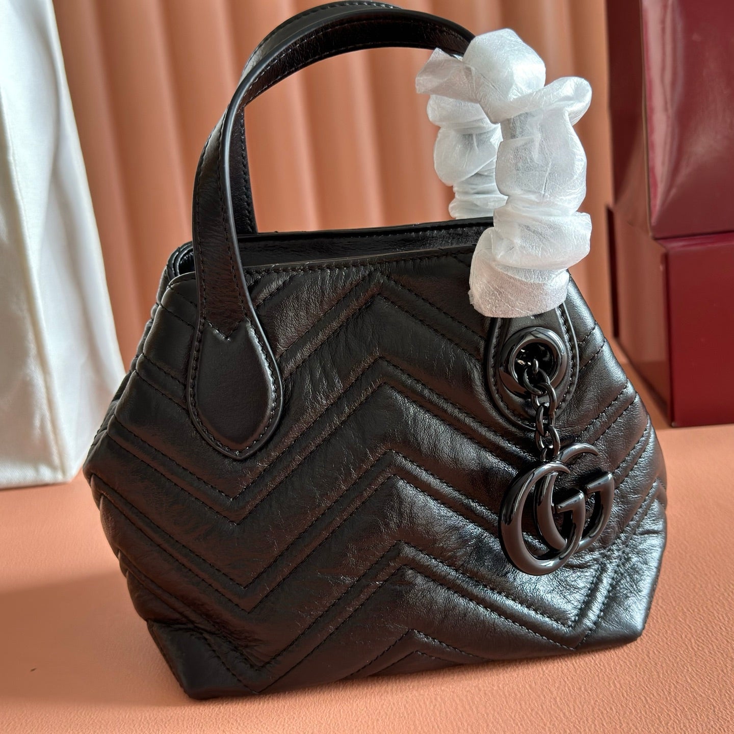 GUCCI 26S GG MARMONT TOTE BAG 17 IN BLACK CALFSKIN