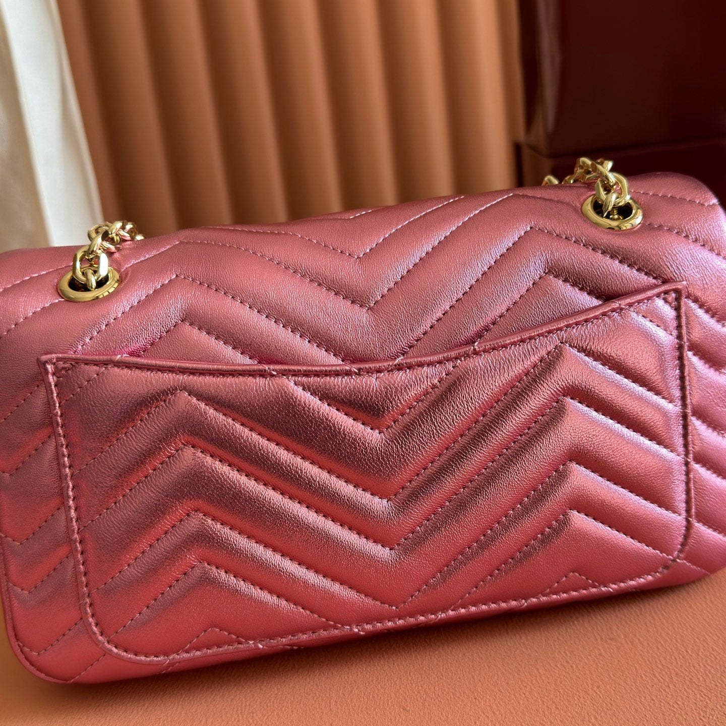 GUCCI GG MARMONT BAG 22 IN METALLIC PINK LAMBSKIN