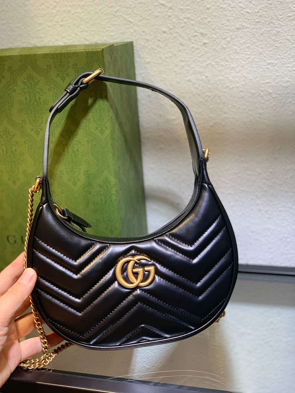 Gucci GG Marmont Half Moon Luxury Handbag Black 24cm