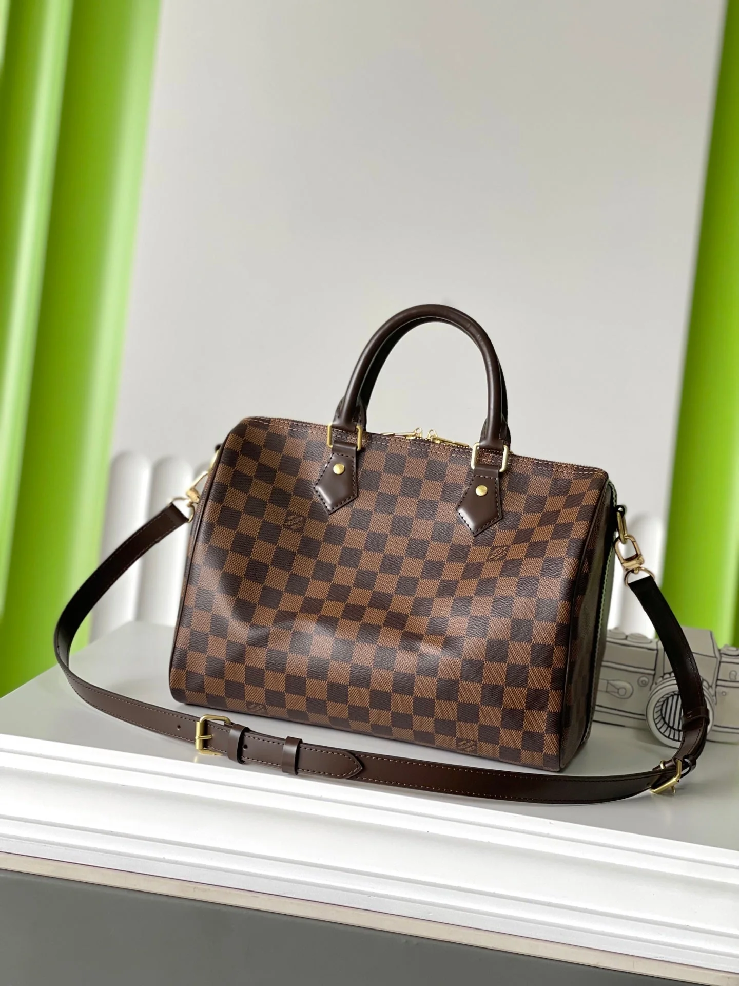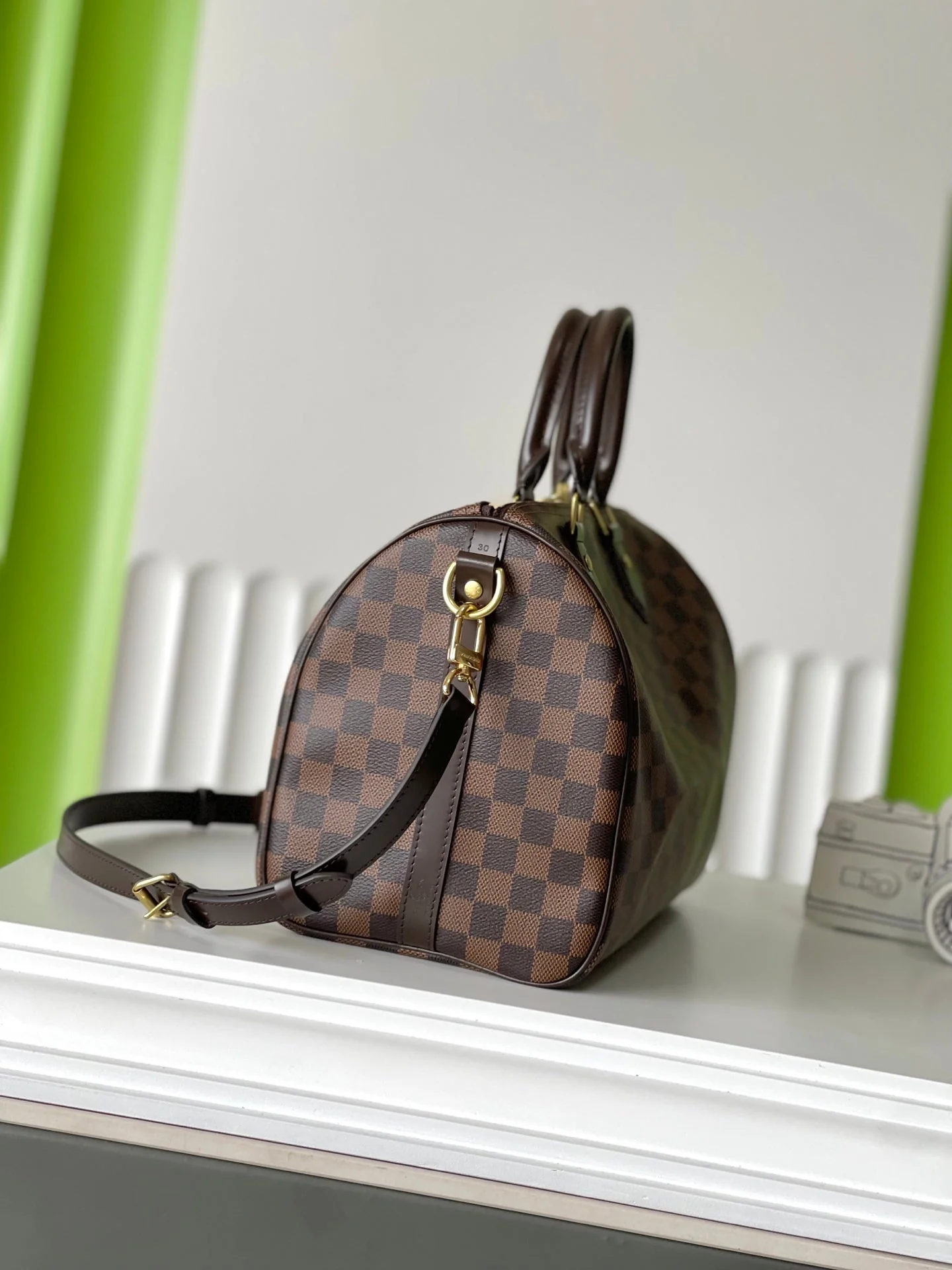 LV SPEEDY BANDOLIÈRE 30 IN DARK BROWN DAMIER EBENE CANVAS GOLD LOCK