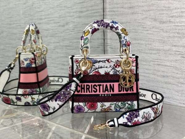 Medium Lady D- Lite Bag White Brocade Like Auth 17x7x15cm