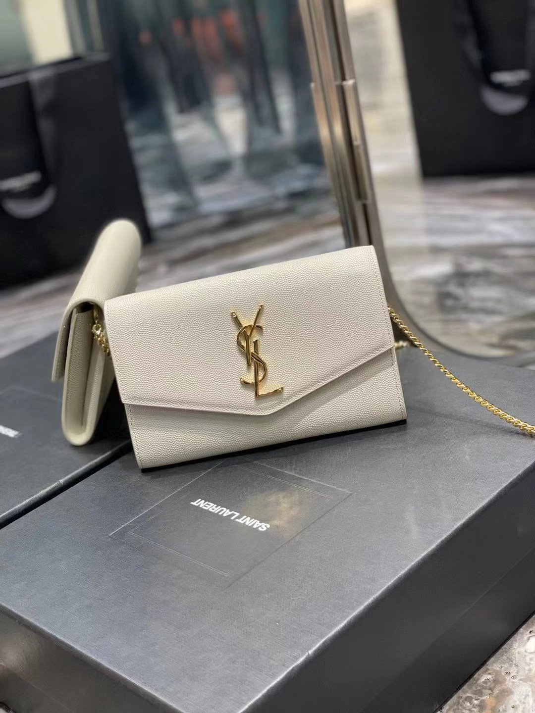 Saint Laurent Grain De Poudre Uptown Chain Wallet White